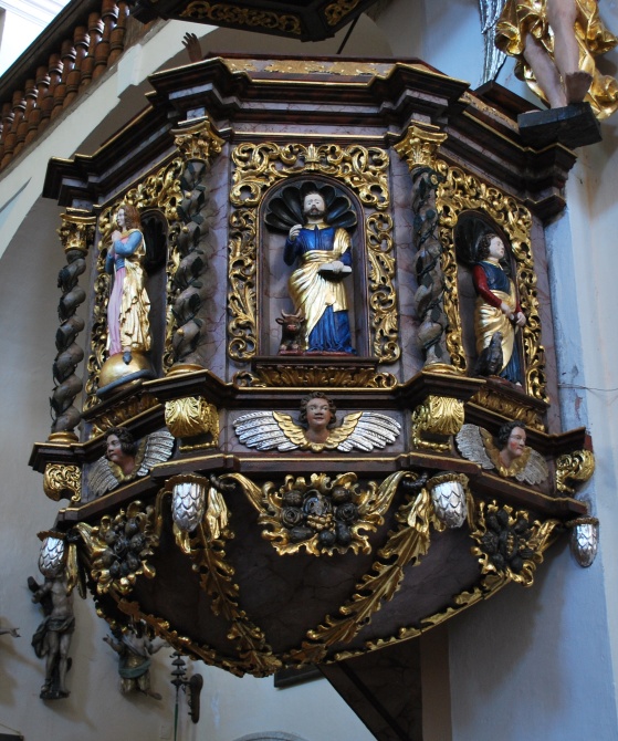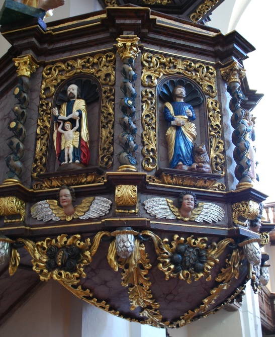 Polychromované sochy na kazatelnu